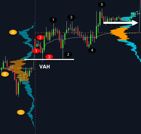 Look for the longs at the VAH (value area high)